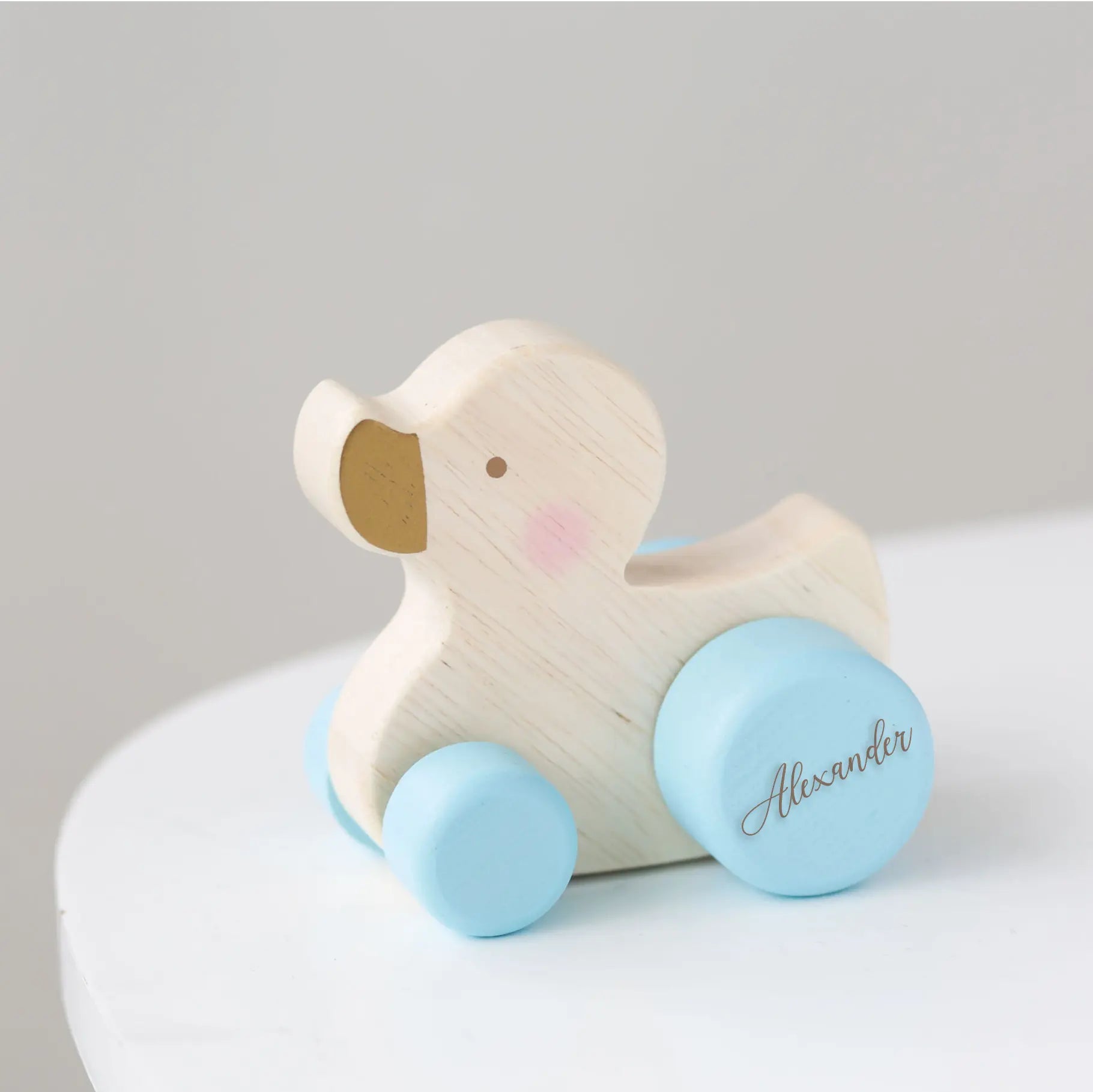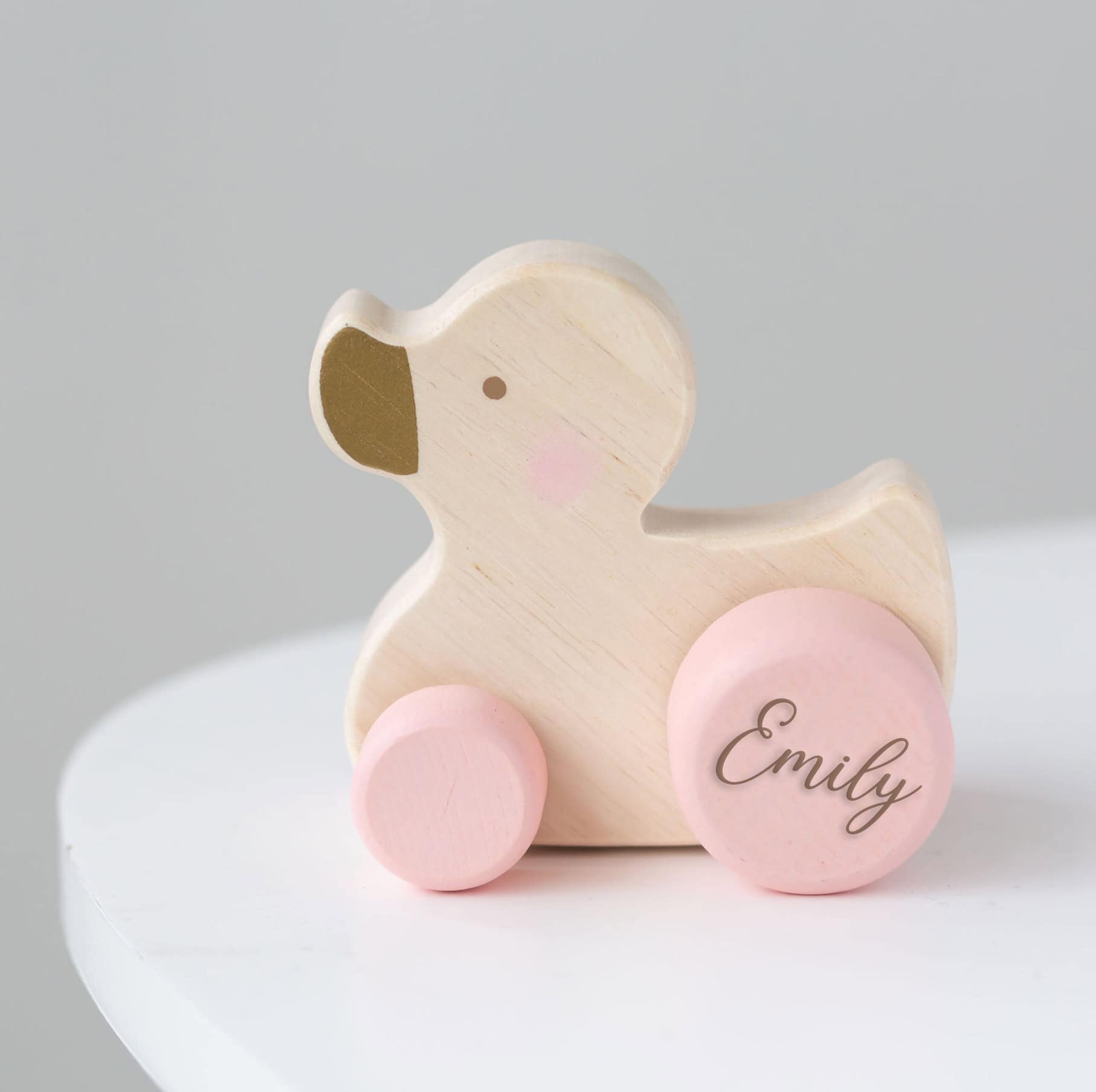 Personalised Kids Wooden Pink, Blue or White Push Duck Toy