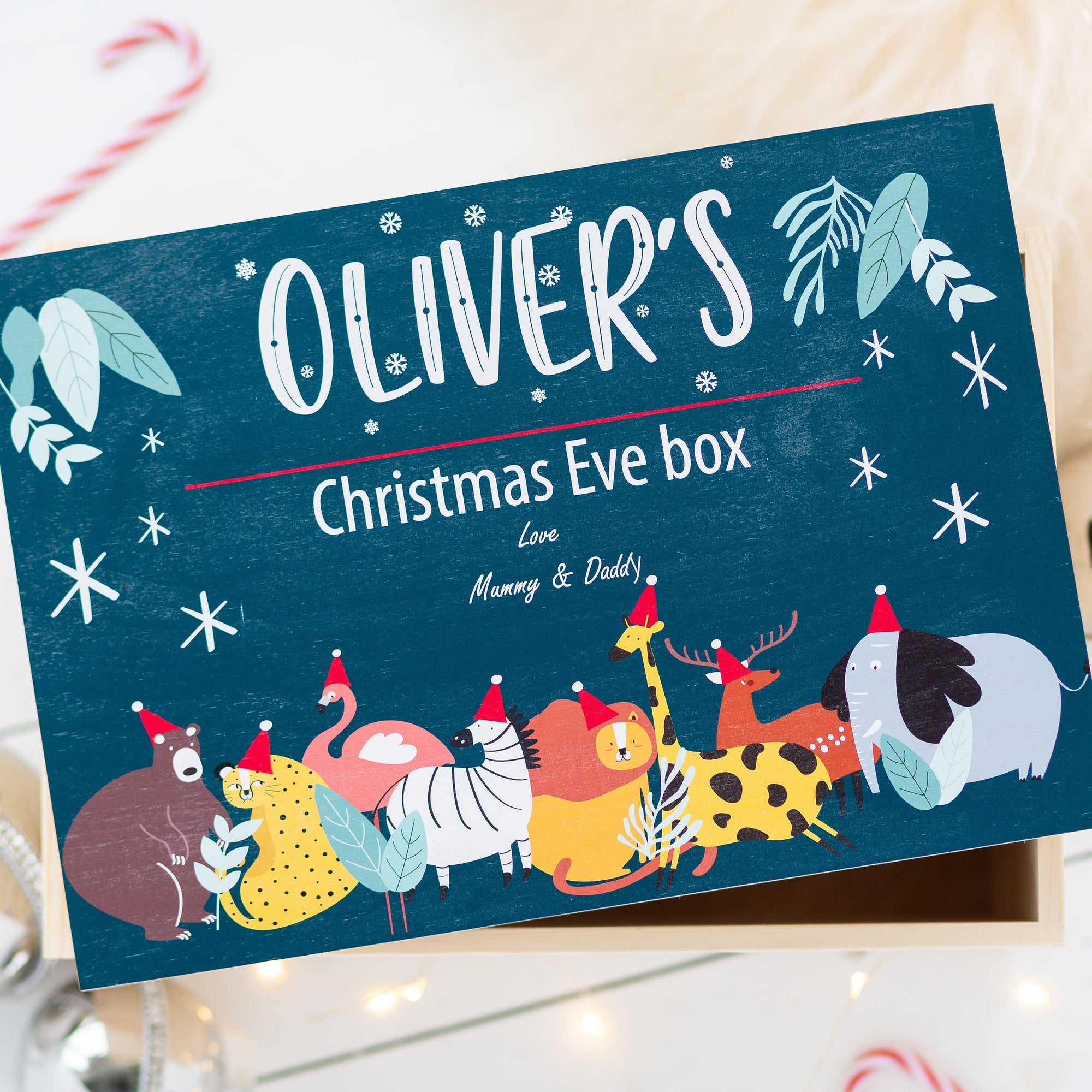 2. Personalised Blue Safari Animal Christmas Eve Box