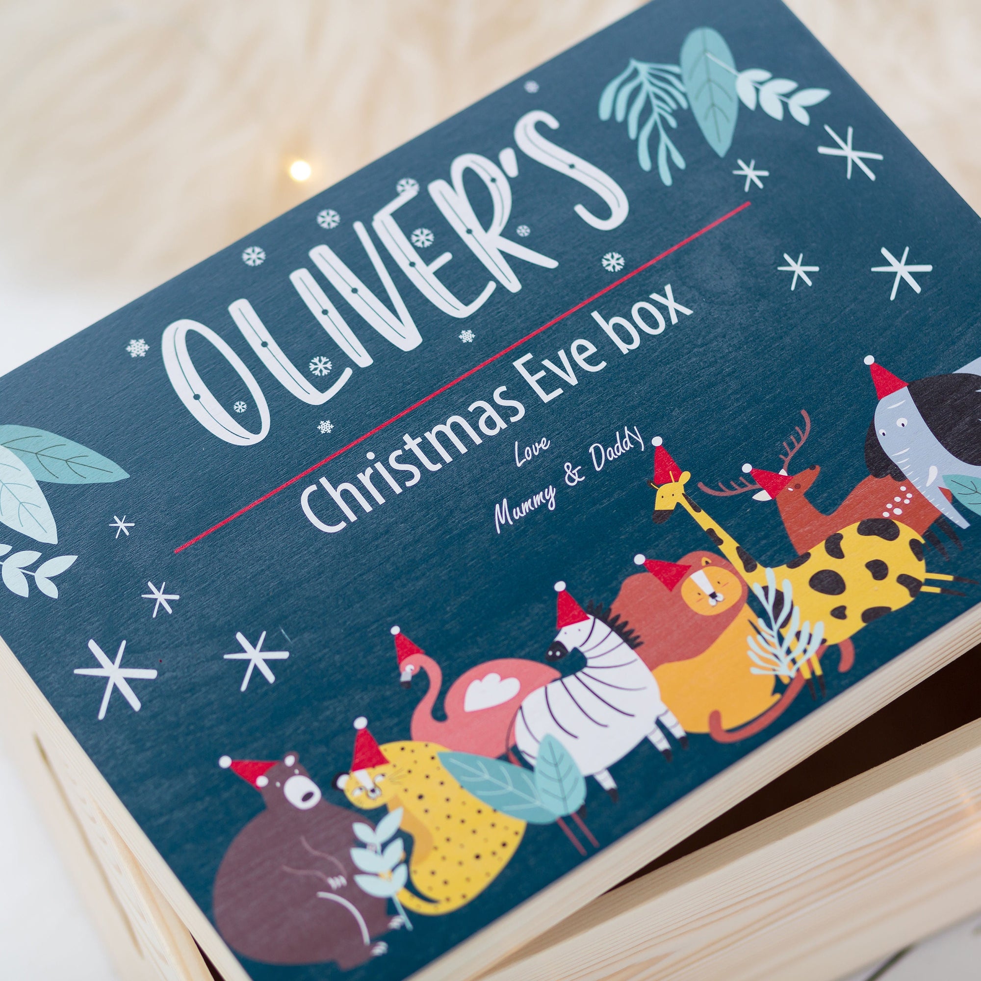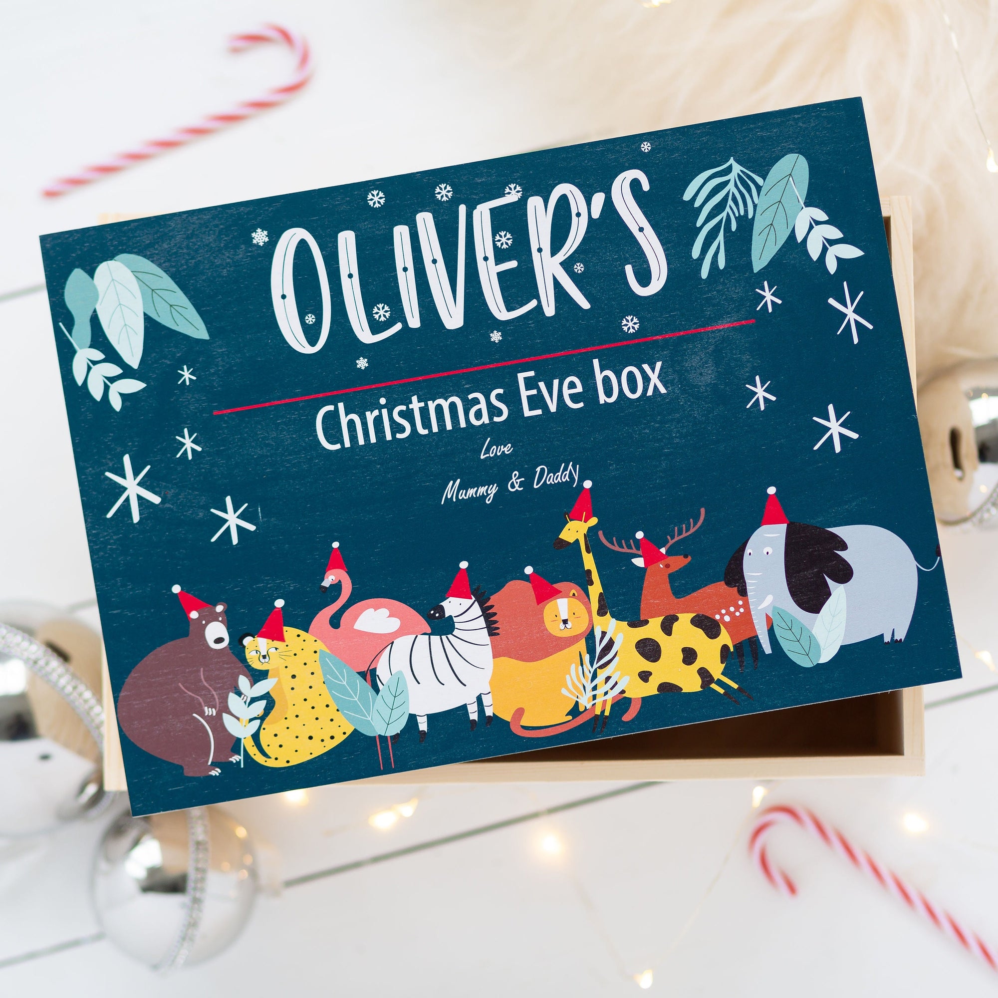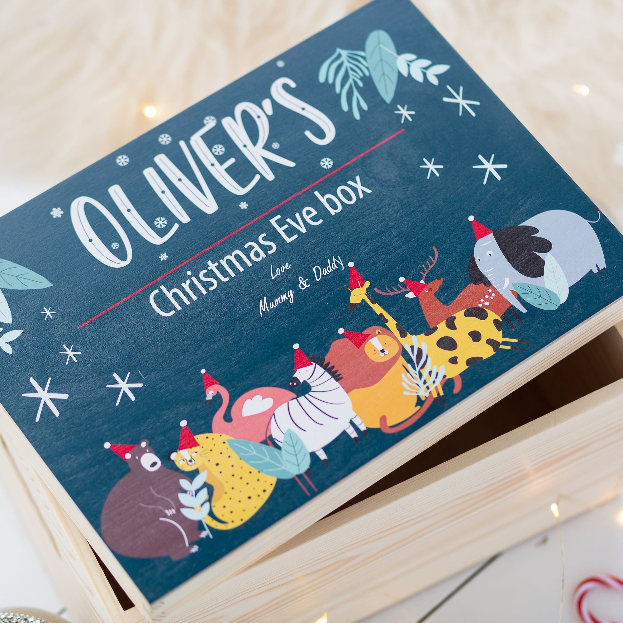 Bring a little extra magic & sparkle to Christmas Eve this year with our Personalised Blue Safari Animal Christmas Eve Box!
