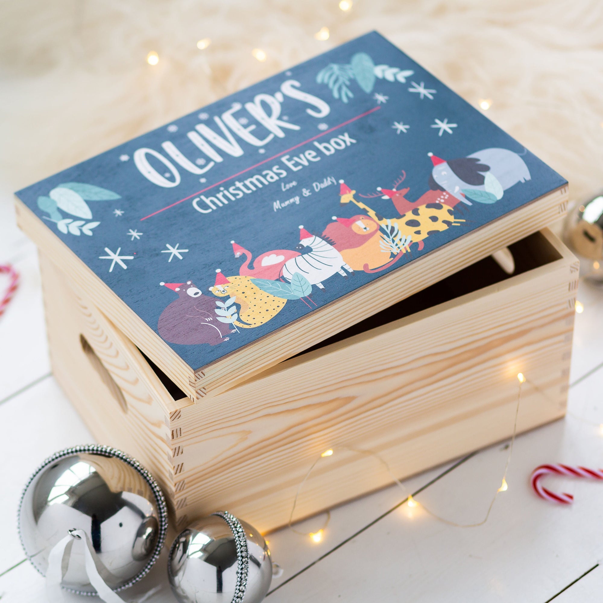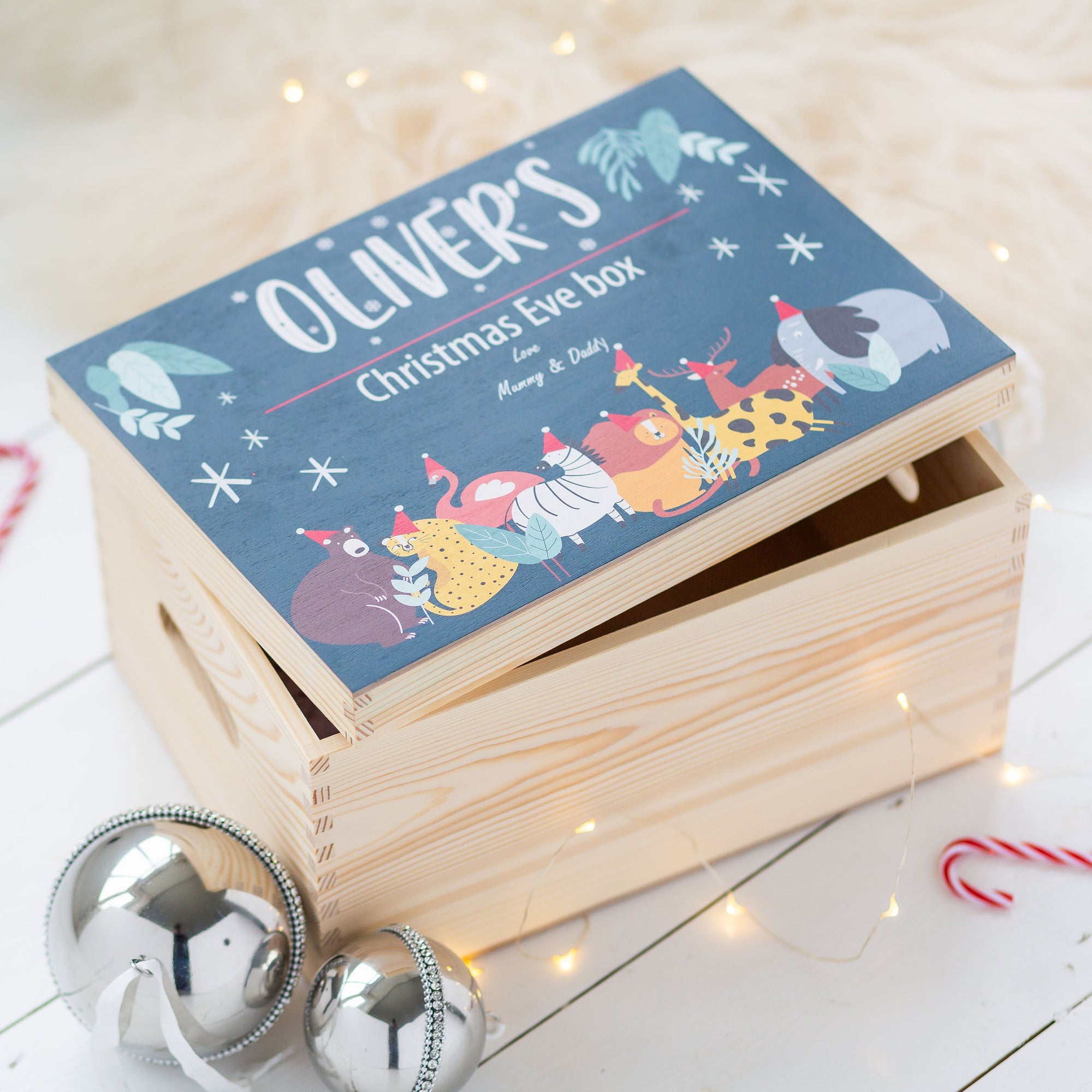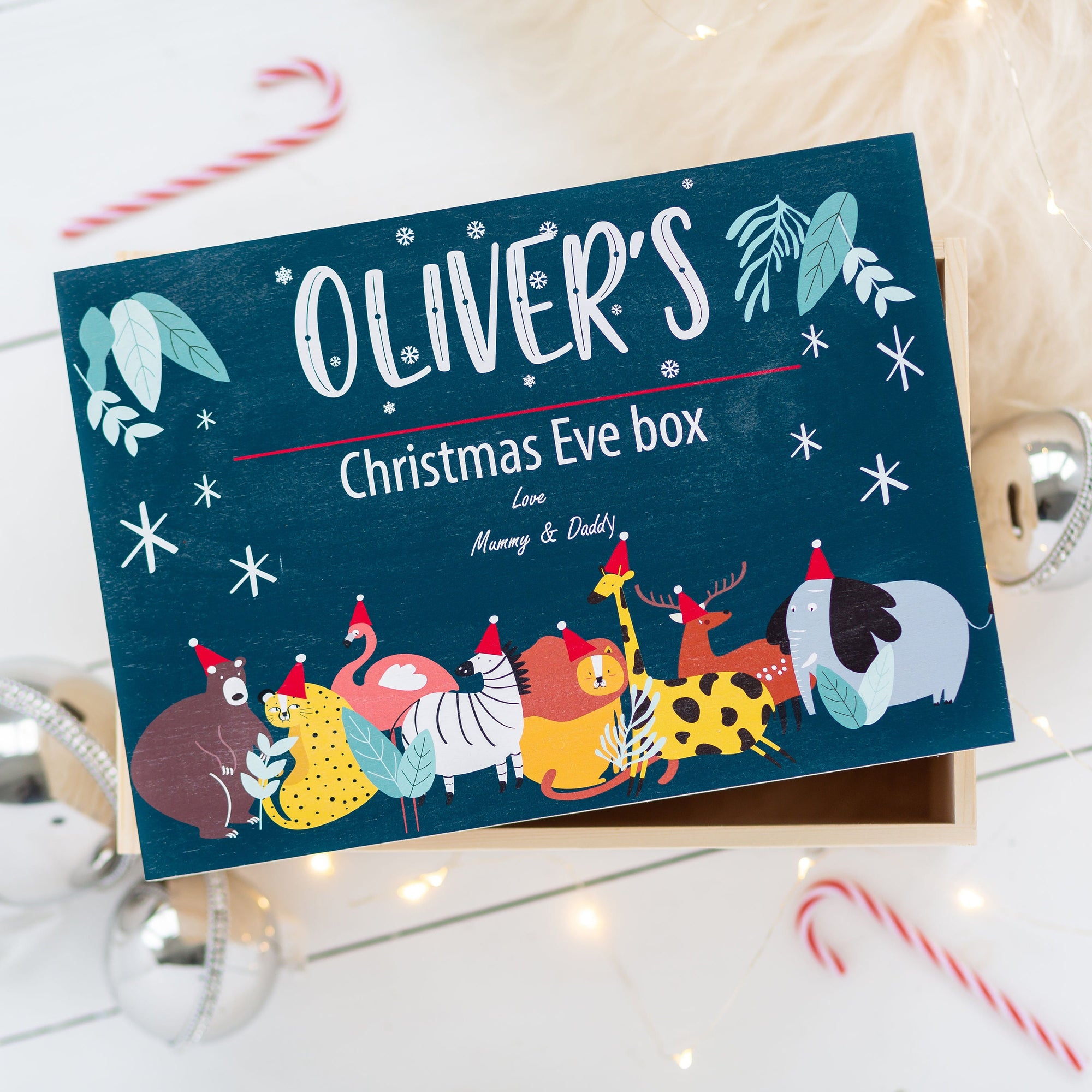 Bring a little extra magic & sparkle to Christmas Eve this year with our Personalised Blue Safari Animal Christmas Eve Box!