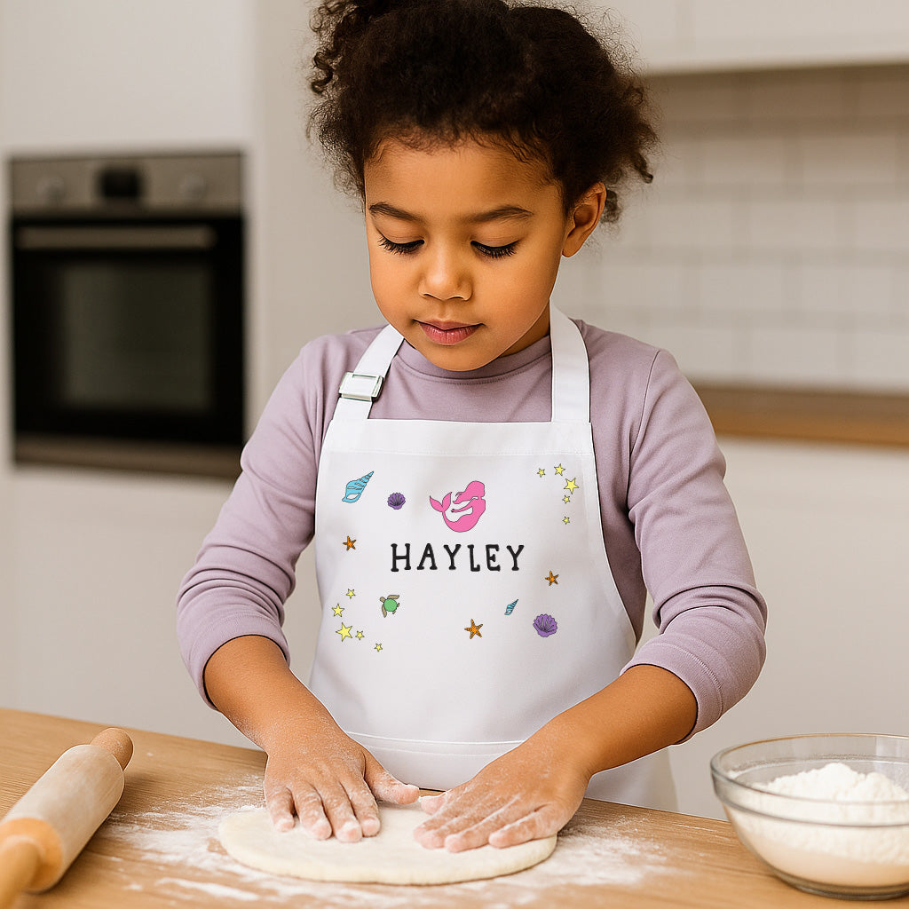 This Personalised Kids Mermaid Themed Apron is designed for older kids who love to cook, bake, or get creative with crafts. Made from durable canvas polyester, it offers a smooth, bright surface for high-quality sublimation prints that really stand out. The apron includes a roomy front pocket for tools, art supplies, or kitchen essentials, plus an adjustable neck strap and side ties for a secure, comfortable fit.
