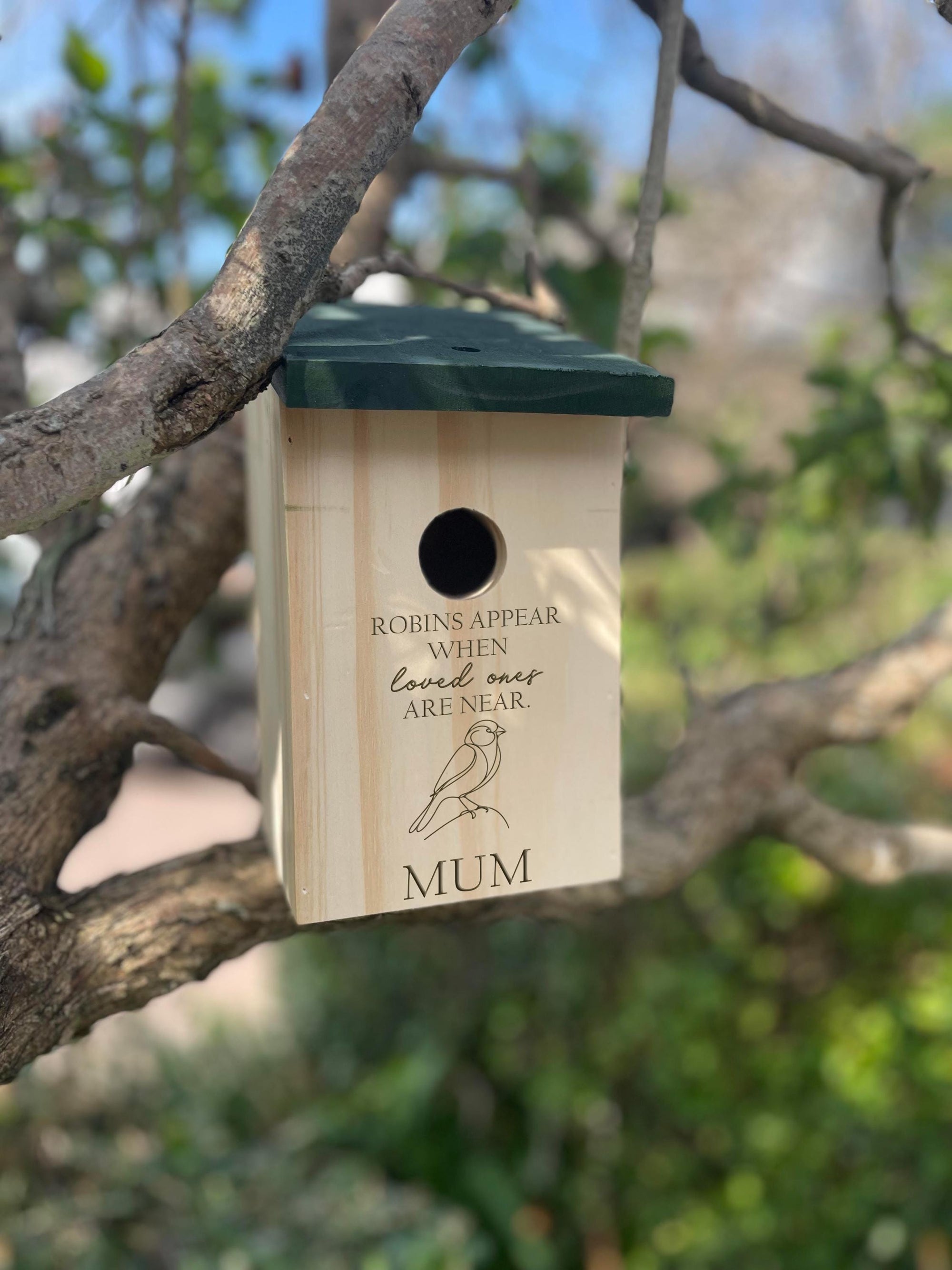 This Personalised Wooden Memorial Robin Nesting Bird Box is a gorgeous sentimental gift in memory of a loved one.